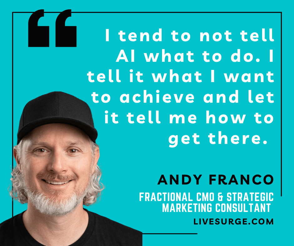 Andy Franco is proof that longevity in marketing comes from staying curious, staying systematic, and never getting too attached to any single tool or tactic. His approach to AI isn’t about chasing what’s new — it’s about building smarter, more sustainable systems that actually support the work.